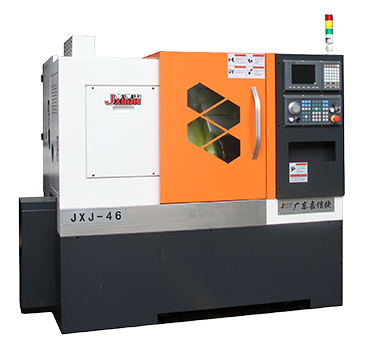 JXJ-46YD 系列數控車床采用 35°斜床身設計,整體鑄造,主軸軸承采 用進口P4 級軸承,具有高轉速、高精度、低噪音的優點,X 、Z 軸雙線軌 設計,運行平穩,精度持久,加工效率高。后置分體式排水設計,可加裝 后排屑機或右排屑機,可實現無人化自動生產。